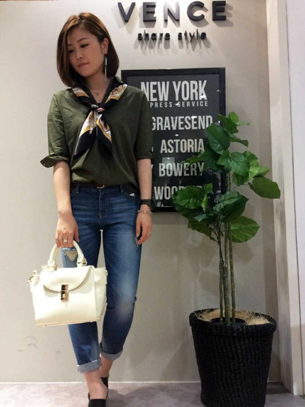 女性らしいラインのスキッパーシャツは今年のマストアイテムです!(●´∀`)ノ+゜*。 大人可愛くまとめるなら、控えめなダメージがいいデニムとカチッとしたショルダーバックでまとめてみて◎