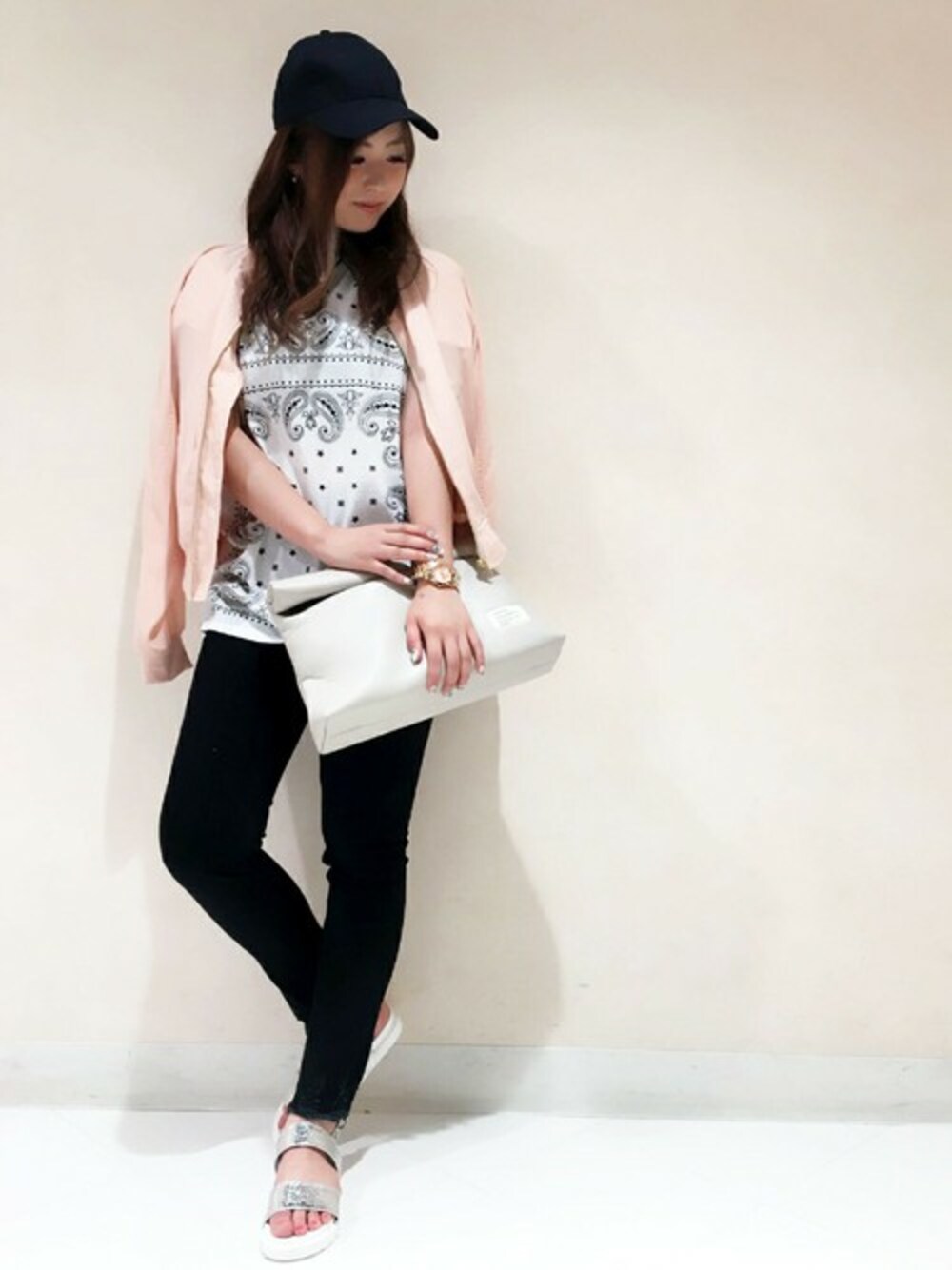 スポーティーミックスコーデ★★ やっぱり今年は、スポーティーミックスが人気!! VENCEのスキニーはストレッチが効いていて動きやすいのでお出かけにぴったりのコーデです(^^) Tシャツは全体に大きく柄が入っていて、かわいいですよ♡