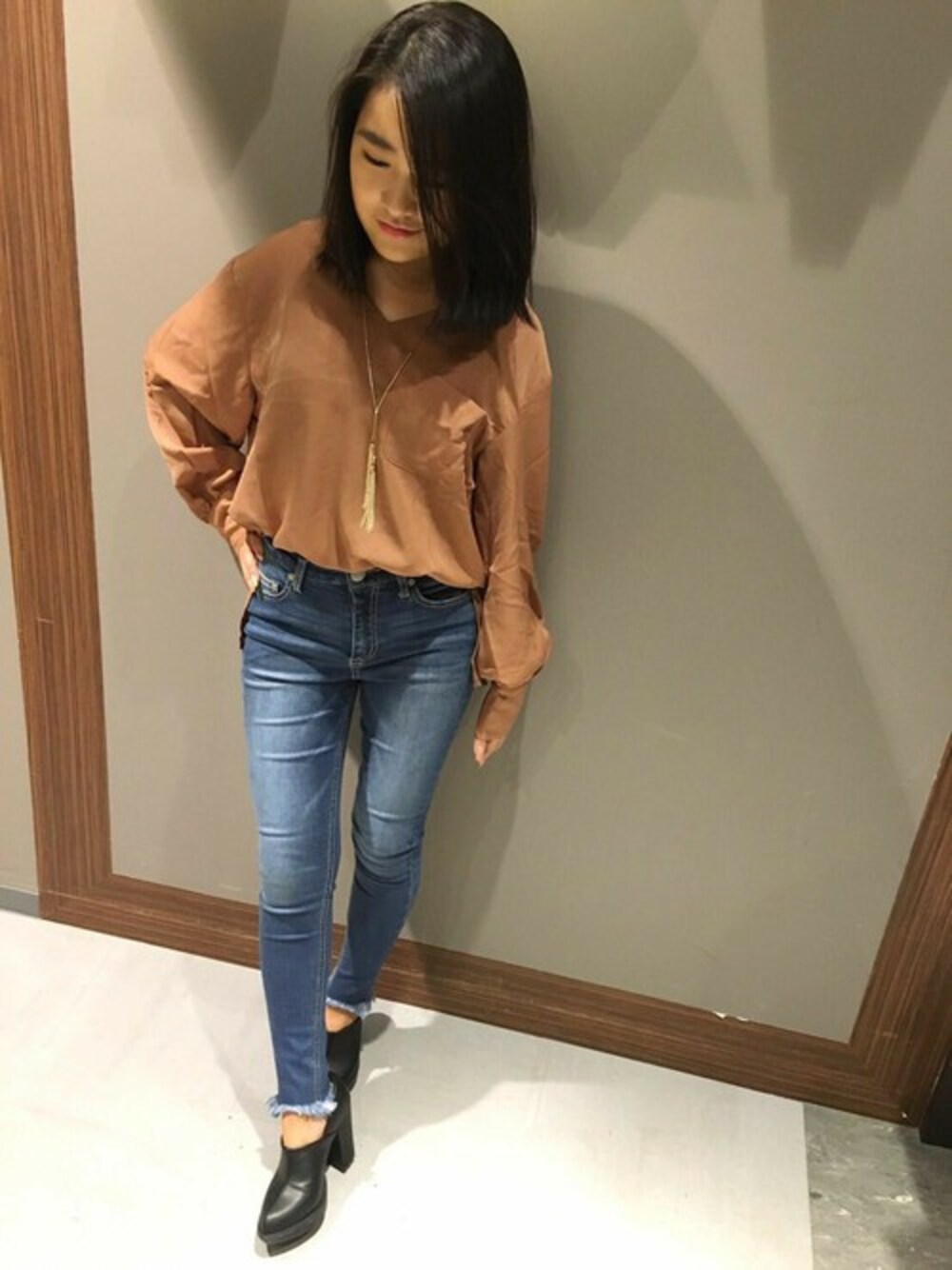 ボリュームのあるシルエットが特徴のブラウスです♡ 前後で長さが違っていて、後ろが長いので、体型カバーもできてしまいます(((o(*゚▽゚*)o))) ボトムスに前インするだけで、今年らしいシャツスタイルになります♡
