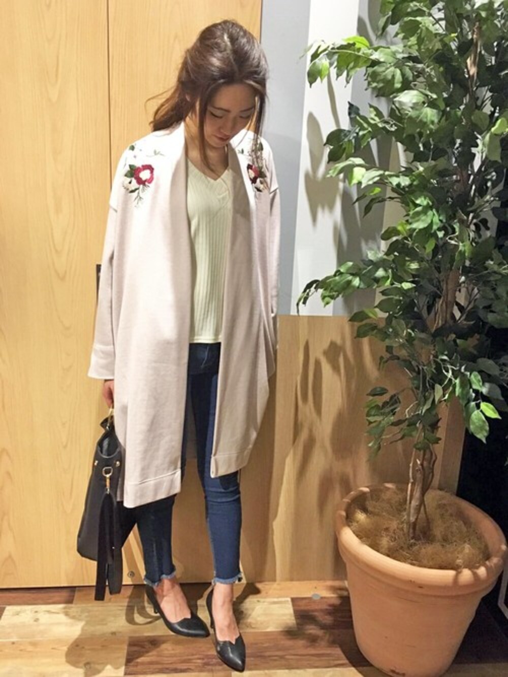今年は刺繍アイテムが目白押し:) 肩刺繍は顔周りを華やかにしてくれます❁ シンプルなコーデにアクセントが効いてます!