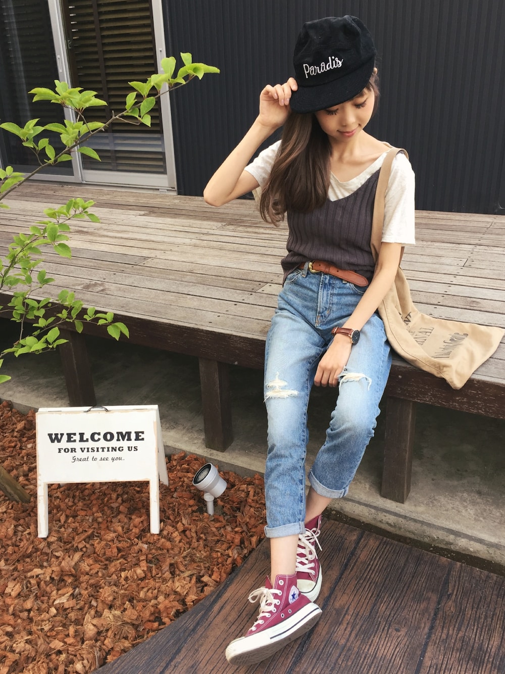 清水夏姫のキャミソール「リブ編みニットキャミ」を使ったコーディネート