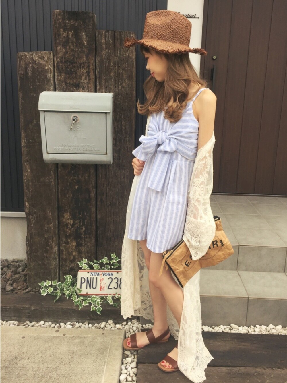 今日のロンパースもお気に入りのセレクトショップのアイテム。胸元のリボンが可愛い!水着の上から着て海に行きたい気分! 一枚できるのはもちろん、Tシャツと重ねたり、ガウンとの相性も抜群です^ ^