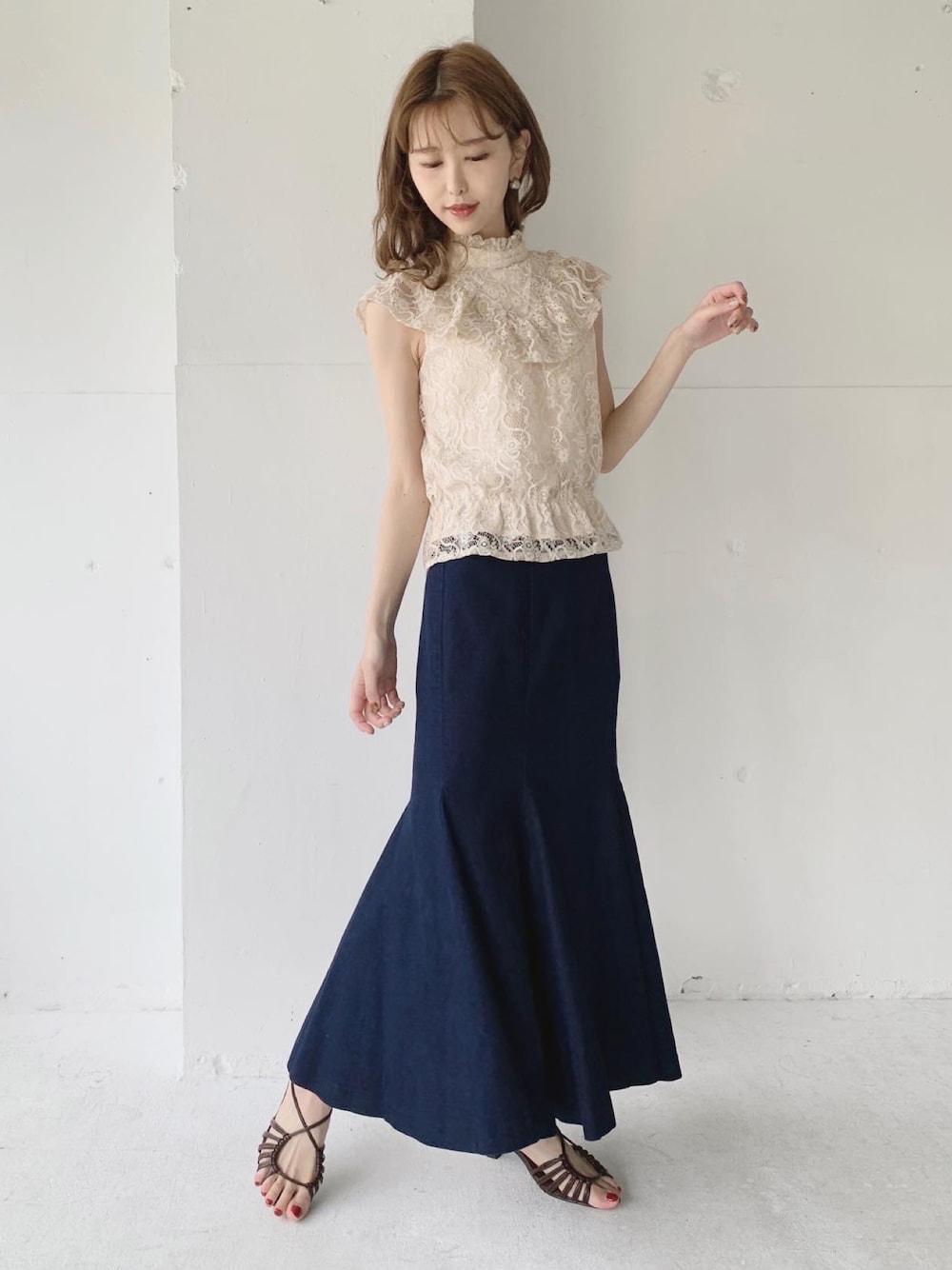 清水夏姫のシャツ/ブラウス「【清水夏姫コラボ】フリル切替総レースブラウス」を使ったコーディネート