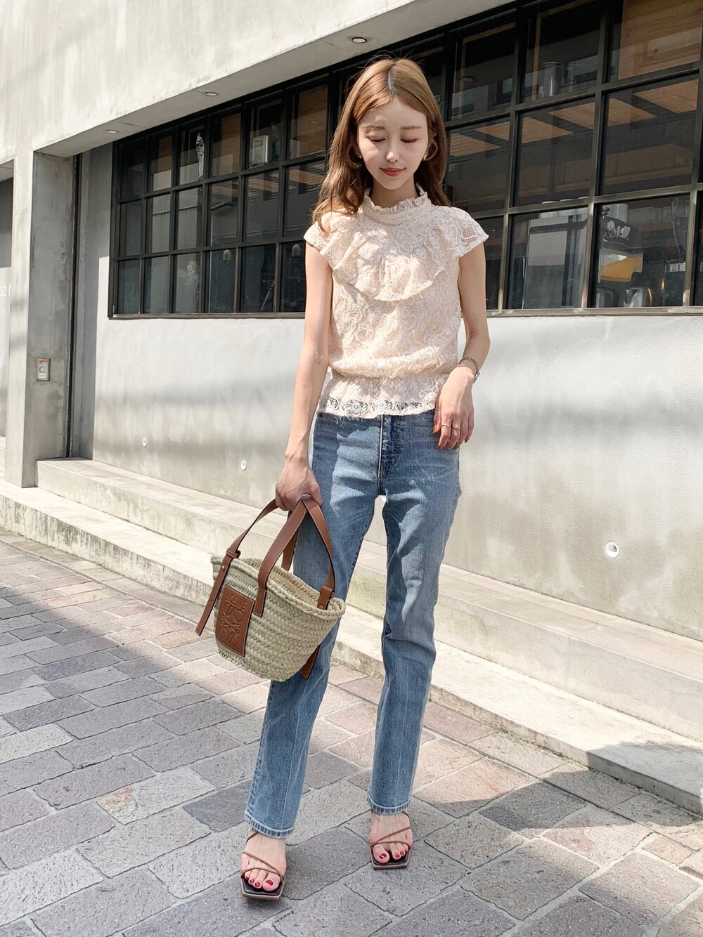清水夏姫のシャツ/ブラウス「【清水夏姫コラボ】フリル切替総レースブラウス」を使ったコーディネート