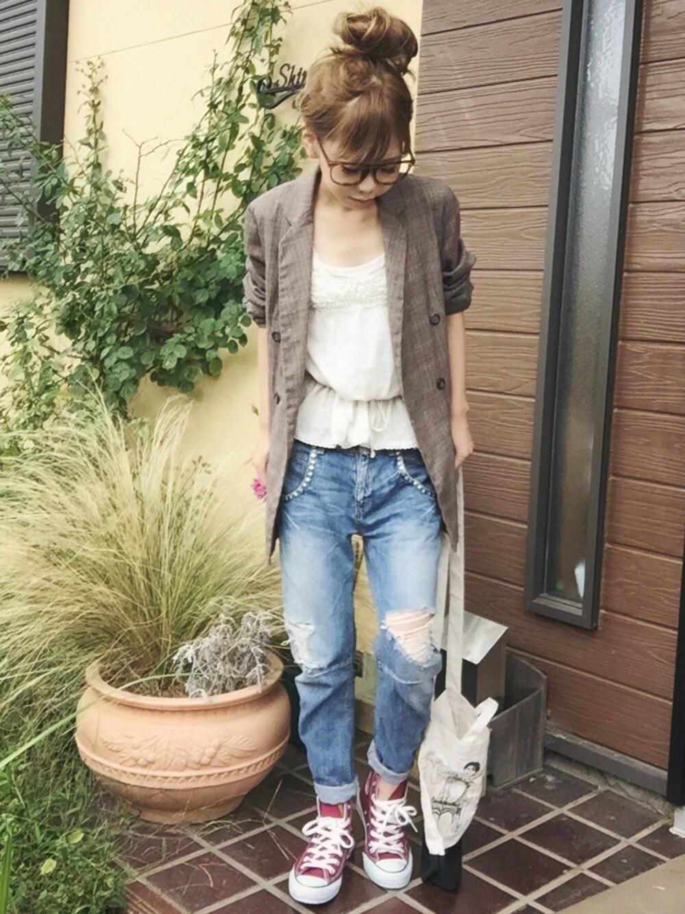 清水夏姫のシャツ/ブラウス「 【Lady Like】シャドーストライプノースリブラウス 」を使ったコーディネート