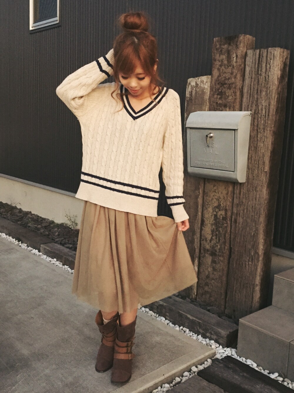 清水夏姫のニット/セーター「 【Casual】Vネックケーブルラインニット 」を使ったコーディネート