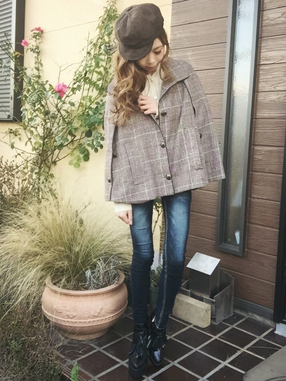トレンドガン無視コーデ。ずーっと前に買って気に入ってるグレンチェックのポンチョ、なんか探偵っぽくて好き。