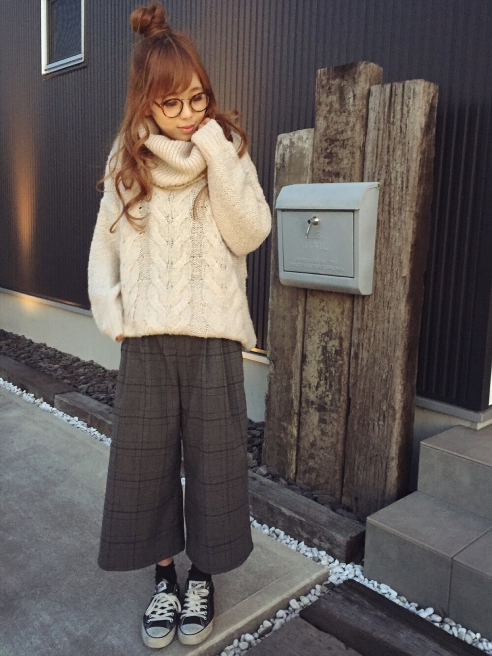 清水夏姫のニット/セーター「【Casual】タートルケーブルルーズニット」を使ったコーディネート