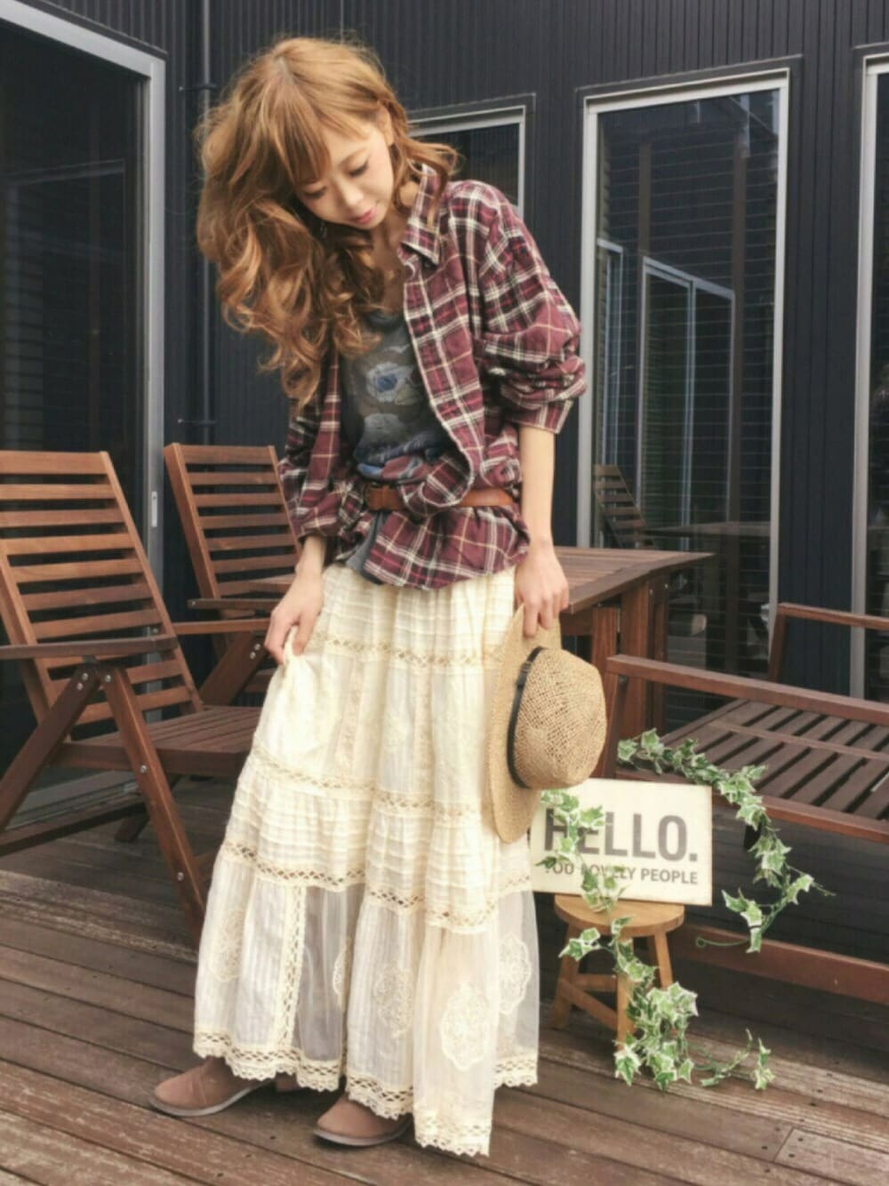 ハードな印象のロックテイストのTシャツ、白のマキシスカートではずしてみました。ちょっと春先取りしすぎたので、足元はショートブーツで。 髪が明るくなりすぎたので美容室に行ってきます。