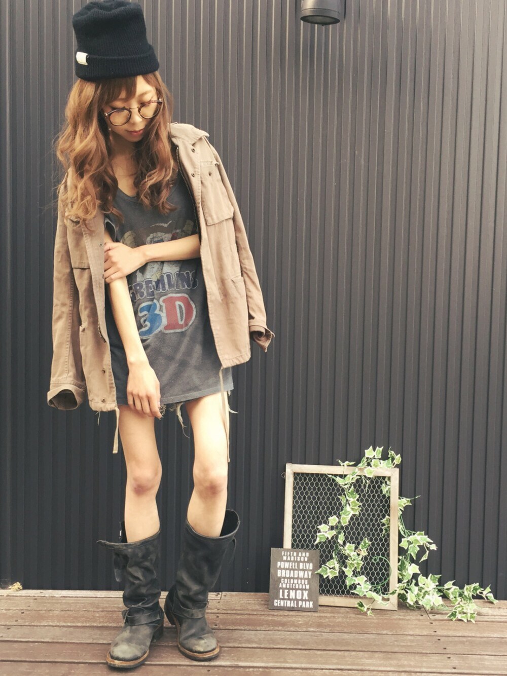 清水夏姫のミリタリージャケットを使ったコーディネート