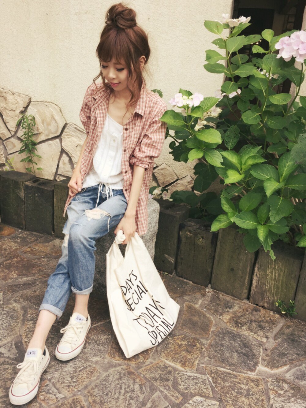 清水夏姫のシャツ/ブラウス「 ミニチェックSH 」を使ったコーディネート