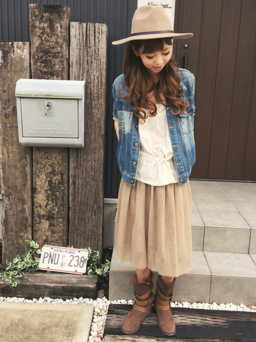 こちらのungridのGジャン結構前のだけど、最近オーバーサイズのGジャンが多い中自分のジャストサイズで気に入ってる。細身のGジャンて女の子らしく切れるから好き。チュールスカート×Gジャンて、間違いない組み合わせ。
