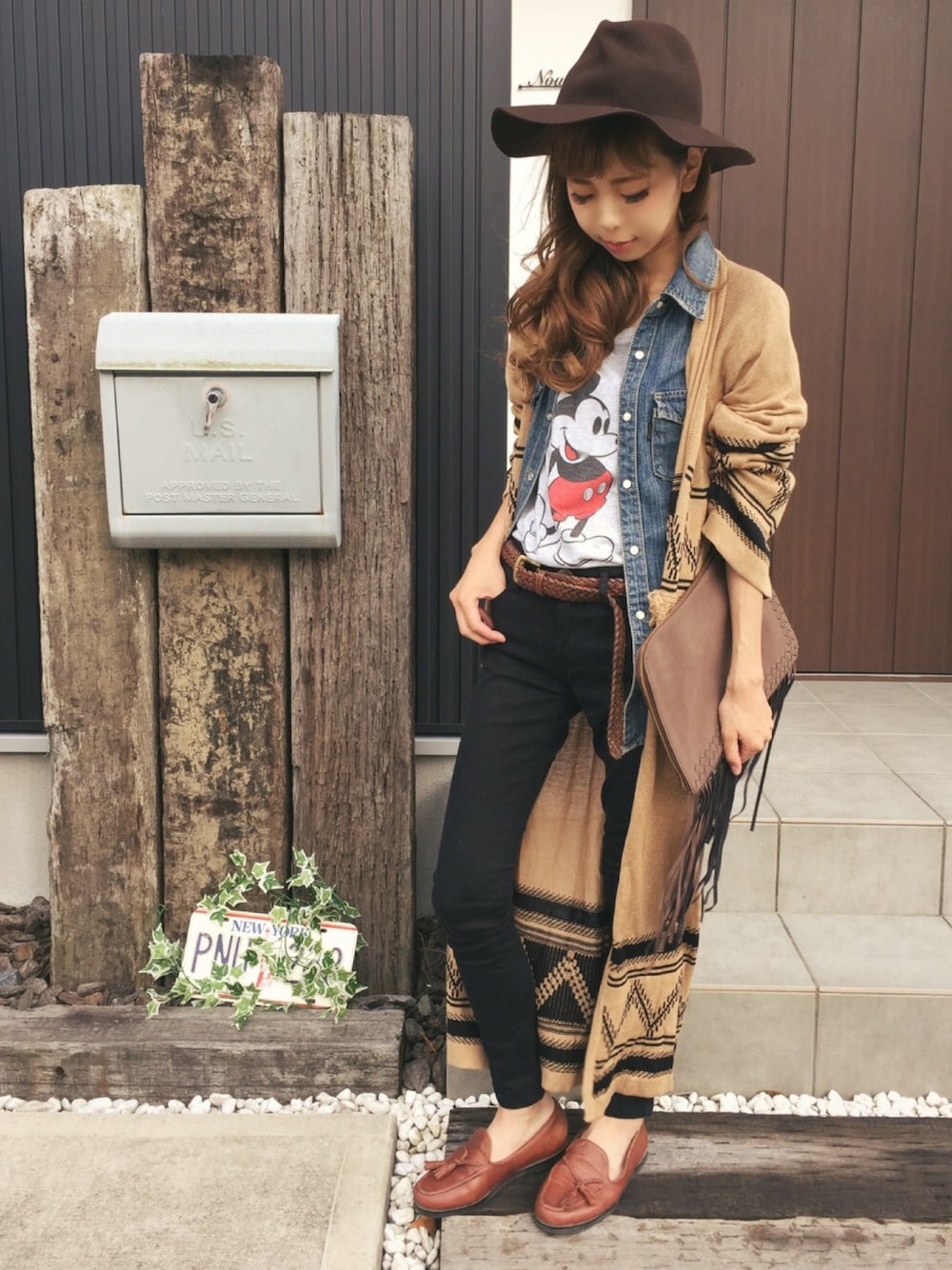 大好評のロングカーディガン。デニムシャツとレイヤードさせて、黒スキニーでメンズライクに。 足元は敢えてローファーでトラッド感を出してみました。結構秋先取りコーデ。
