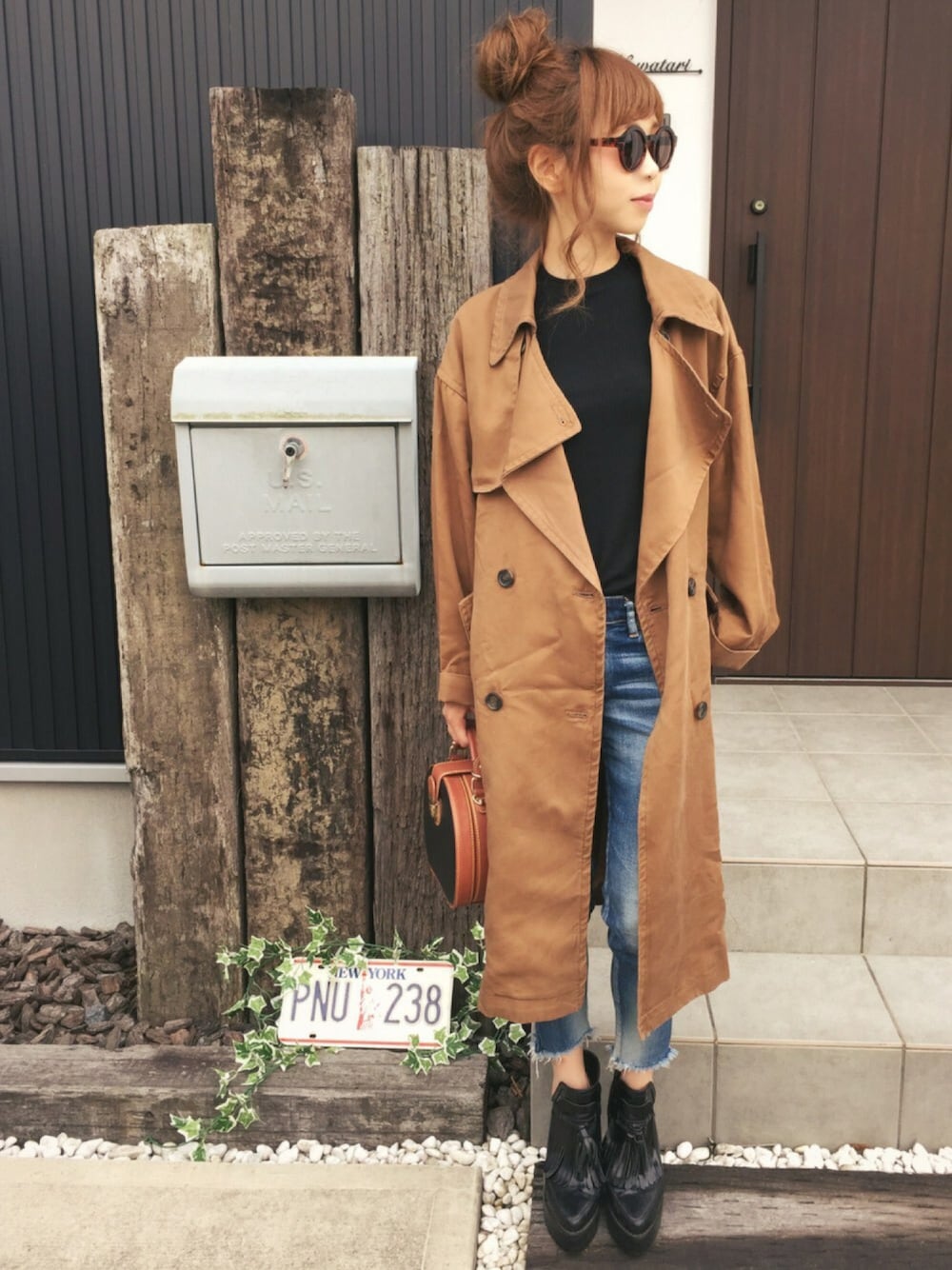 シンプルで、珍しくちょっとキレイめに。 タイトなインナーにルーズなトレンチコートをばさっと羽織ってメンズライクに。 サングラスって普段絶対かけないんだけど、今回ちょっと挑戦。うーん。どうしたらサングラスカッコよくかけらるるの、、。(笑)