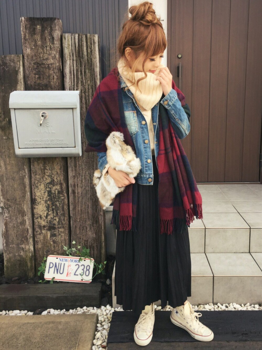 最近寒くてとにかく重ね着重ね着。薄手のGジャンだけれど、大判サイズのストールをショール風に巻けばあったかいしお洒落♪ 得意の2色買いしたOZOCのプリーツスカートは、スエード調素材で冬でも暖か!ベージュも黒もヘビロテ中です(*^^*) 黒のプリーツスカートはナチュラルにもカッコよくも可愛くも、幅広いスタイルに使えてとっても便利♡ ちなみにベージュは残りわずか!( ゚д゚)気になられた方はZOZOTOWNをチェック!
