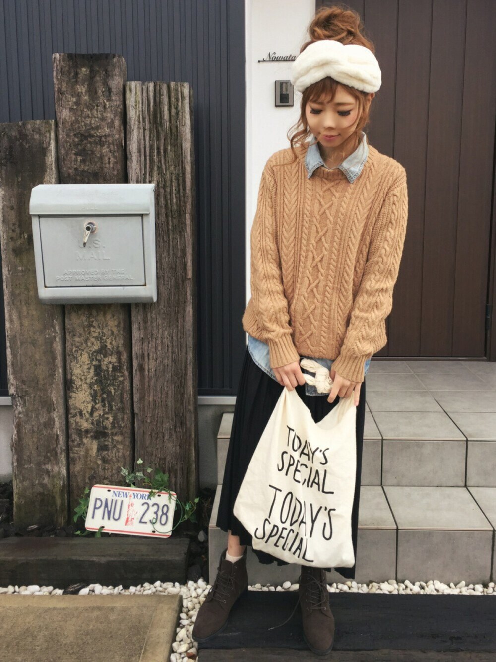 清水夏姫のニット/セーター「【Casual】ケーブルプレーンニット」を使ったコーディネート