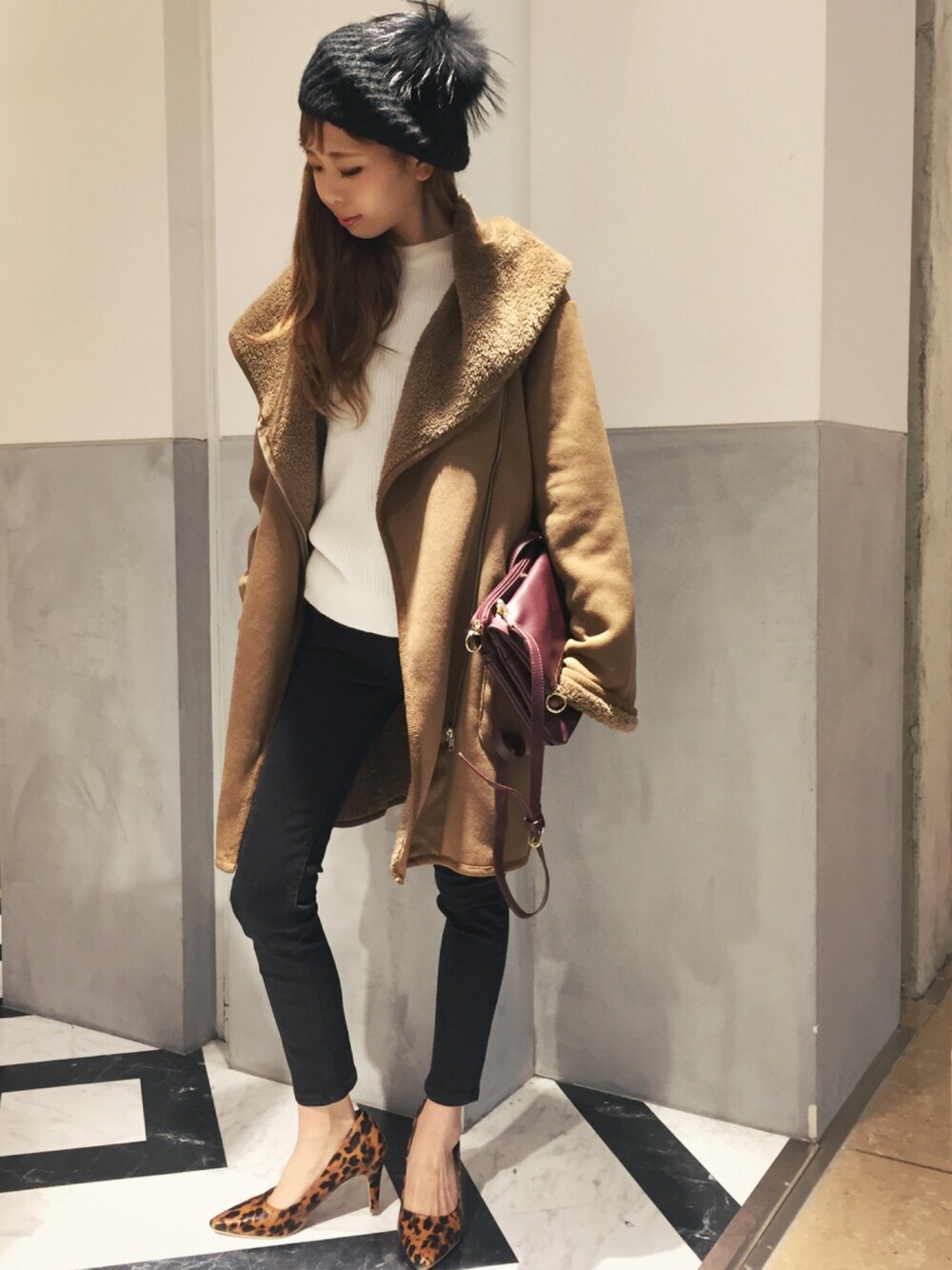 今回も全身OZOCコーデ(^-^) アウターのボアコーディガンは温かいのに、とっても軽くてびっくり!今の季節、コートよりも着やすくて、大活躍中です。 シンプルな色使いの中に初挑戦のレオパード柄のパンプスを履いてコーディネートのアクセントに(´∀`*) インナーとボトムはタイトなアイテムを選んでバランスよく着てみました(*^^*) こういうちょっとキレイ目なコーディネートって久々だから、ちょっと緊張。(笑)