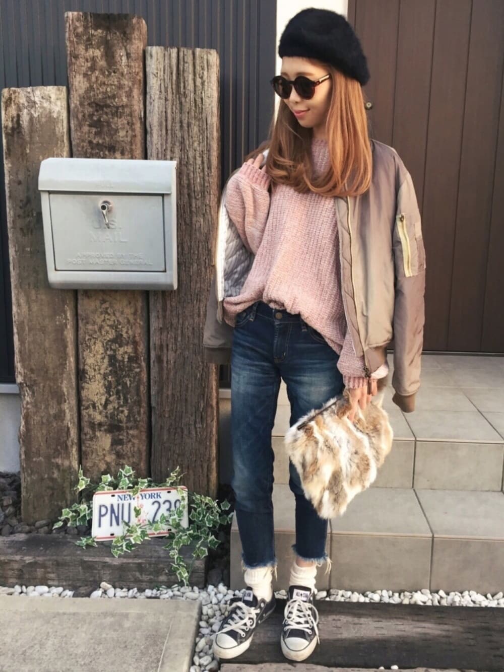 ゆる〜いシルエットとふわっとした袖がお気に入りのOZOCのファンシーモールニット、今回はカーキのMA-1と合わせて甘辛ミックス。 かっちりきまりすぎないように、足元は靴下×コンバースでラフさをプラス! ピンクって今までなかなか挑戦出来なかったけど、このくすんだ感じのピンクは大好きだし、合わせやすくて挑戦しやすいカラー(*^^*) カーキとの相性も良い〜♡