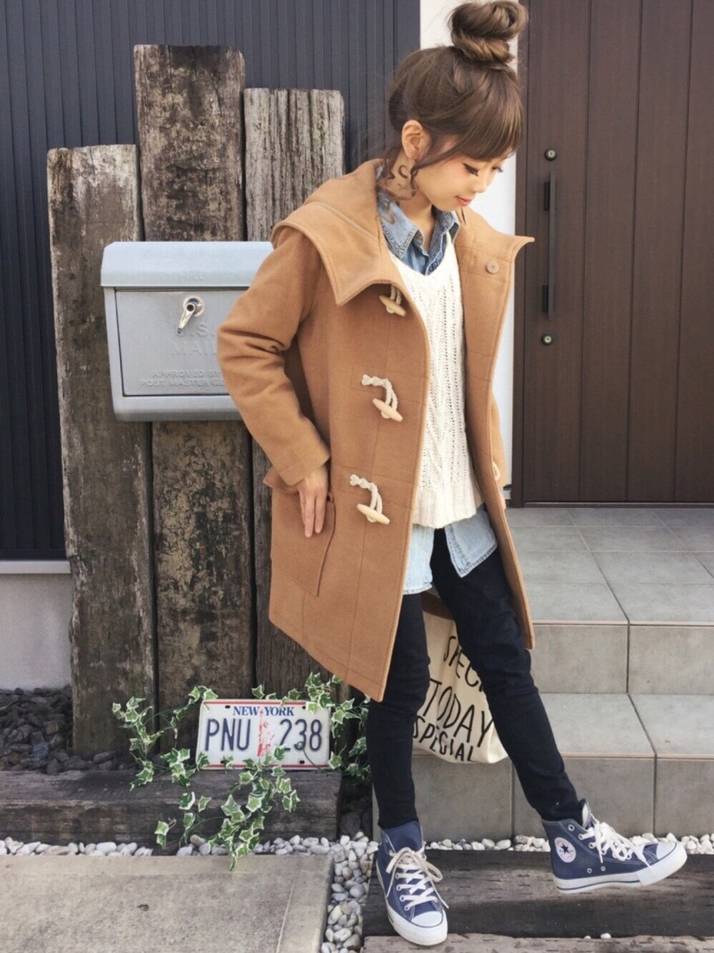 清水夏姫のダッフルコート「ミドル丈ダッフルコート」を使ったコーディネート
