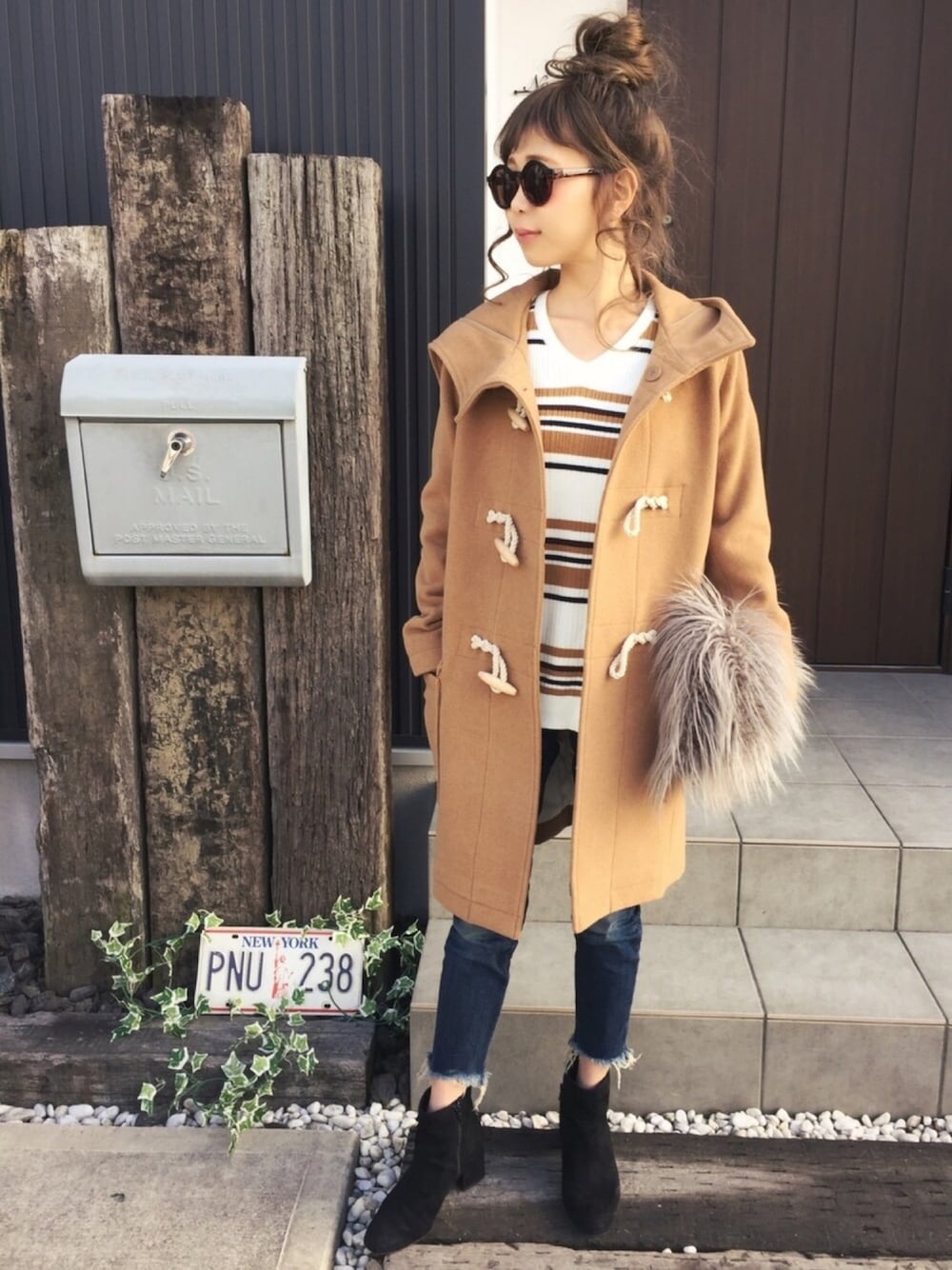 清水夏姫のダッフルコート「ミドル丈ダッフルコート」を使ったコーディネート
