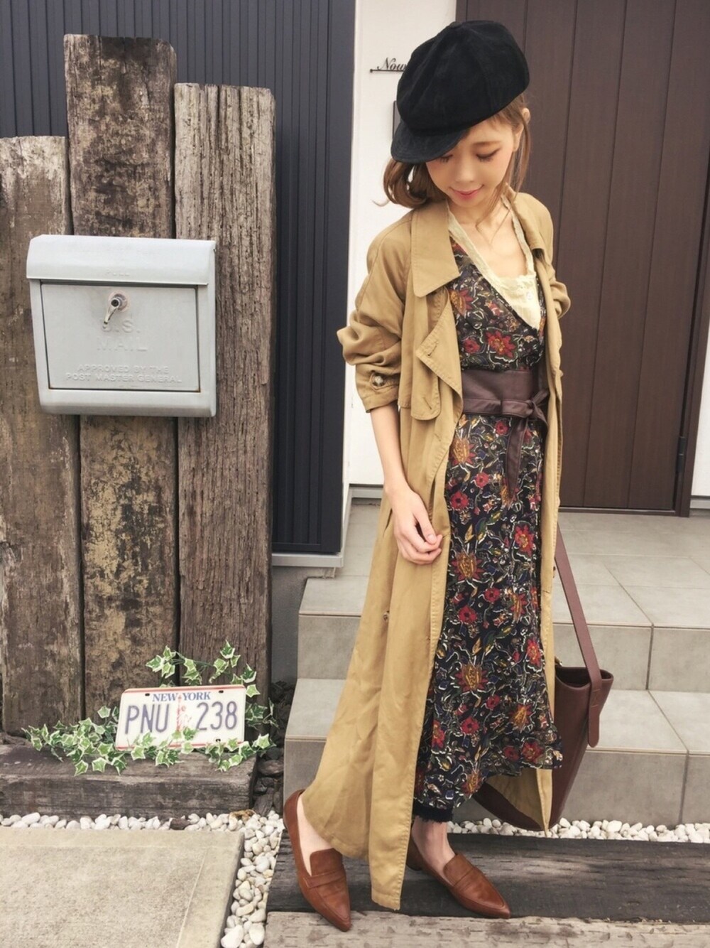 ungridのフラワープリントガウン、今回はワンピースとして着てみました。 アウターはヘビロテしているungridのロングトレンチ。 ローファーは以前にも紹介した大好きな先輩のセレクトショップで!形もカラーも探していたのとぴったりで即購入しちゃった〜〜。