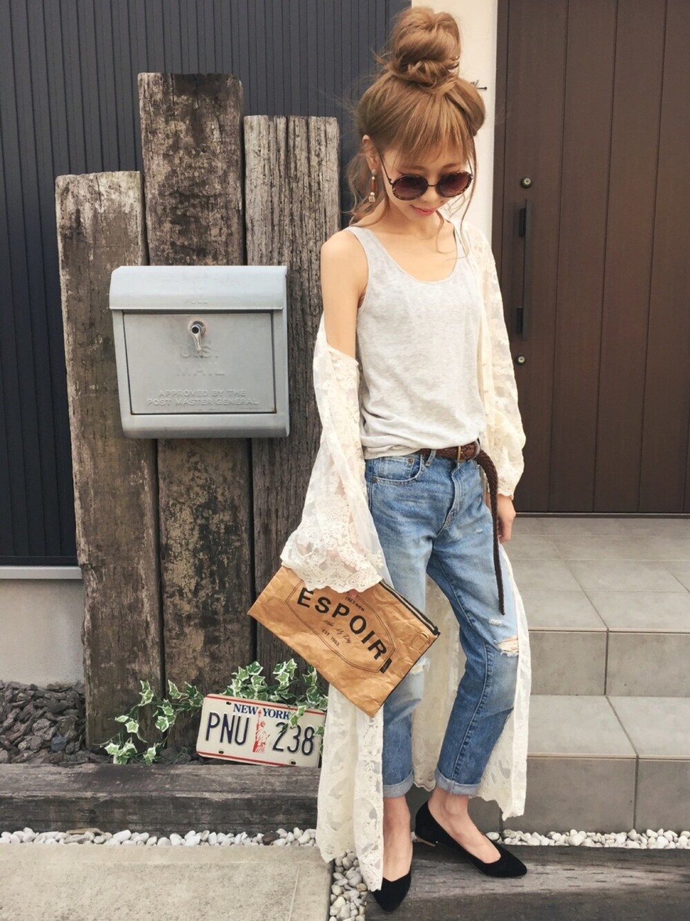 今季のozocのチュールガウン、ネグリジェ見たいなデザインが可愛すぎて購入!色味もツボ! あえてドカジュアルなコーディネートに羽織ってハズしてみました。