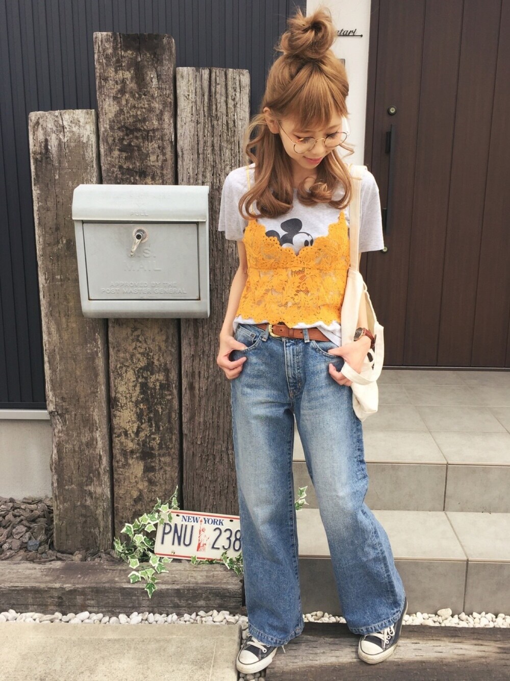 清水夏姫のキャミソール「コードレースショートキャミ」を使ったコーディネート