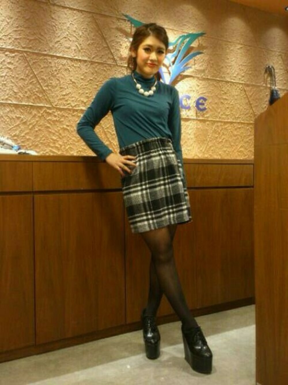 chiapiのスカート「チェックペンシルハイウエストスカート」を使ったコーディネート
