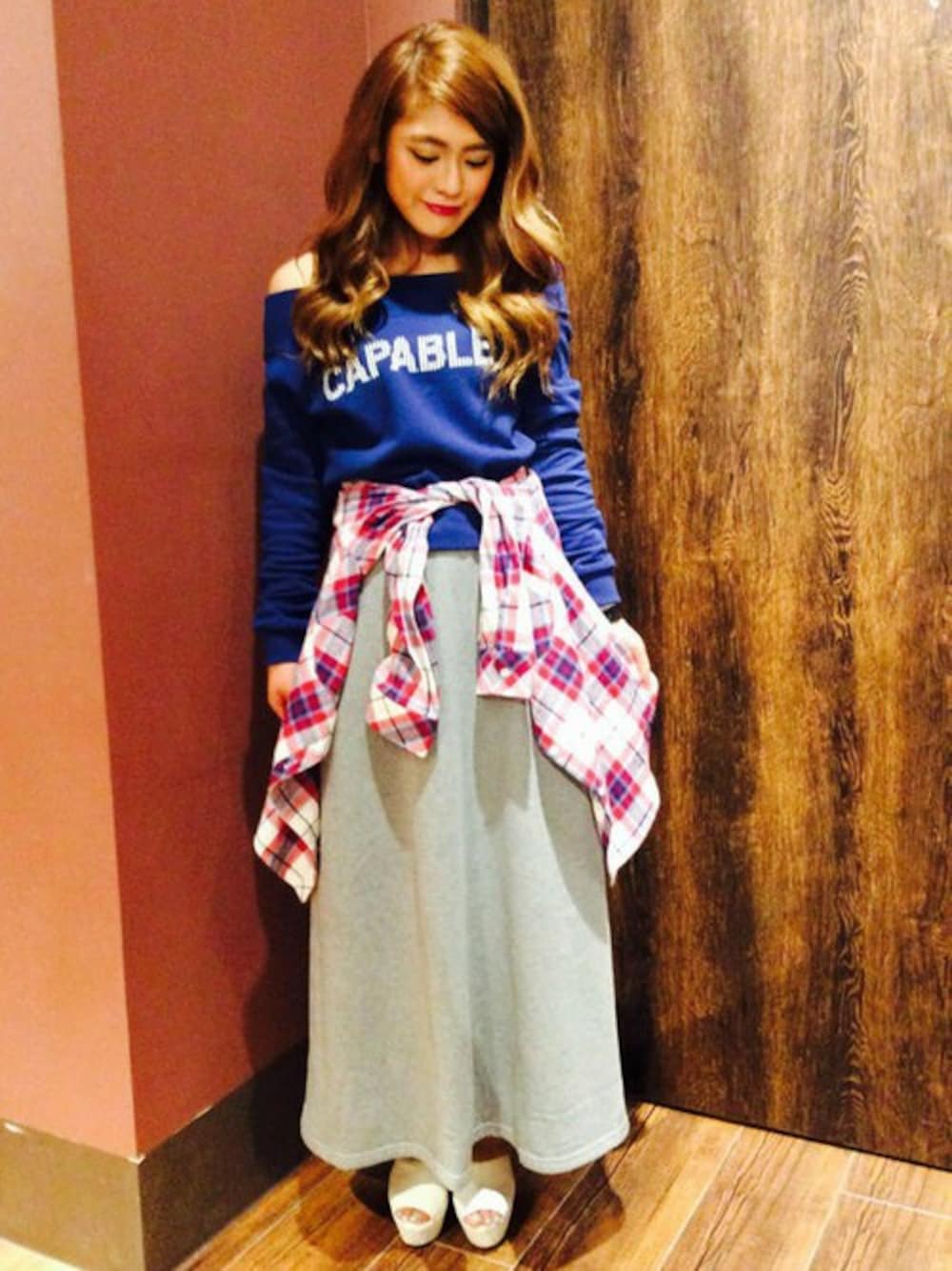 オフショルとマキシ丈スカートって意外と合うんですよ。 ゆるカジになり、肩も出てるので、少し大人な雰囲気にもなります♪ ニット帽や、ダウンベストとも合います。 寒い時はムートンブーツやダウン系のアウターともコーデしやすいですよ◎ 腰に巻いてるシャツも春の新作ですが、大変お手ごろ価格となっております! シャツは1年中着れちゃうので何枚持っててもいろんな服装とコーデしやすいですよ♪