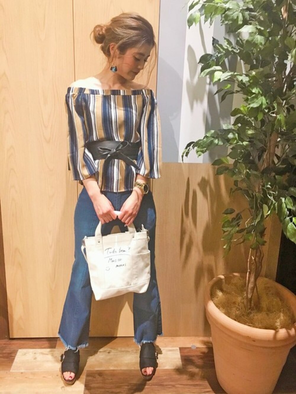 chiapiのシャツ/ブラウス「エスニックストライプオフショル 」を使ったコーディネート