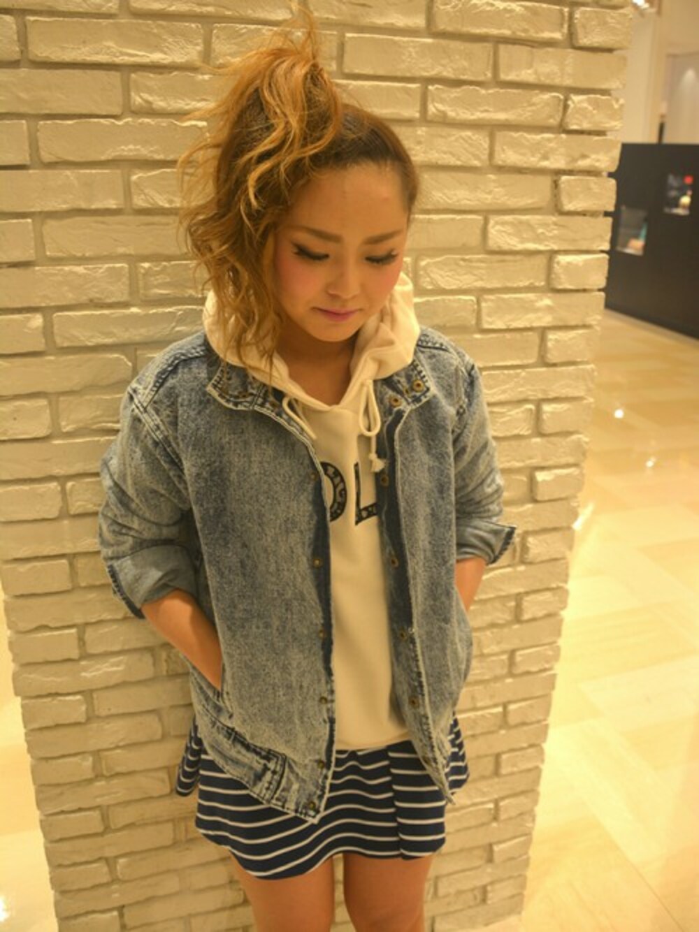 mihoのデニムジャケット「デニムバック刺繍スタンドJK」を使ったコーディネート