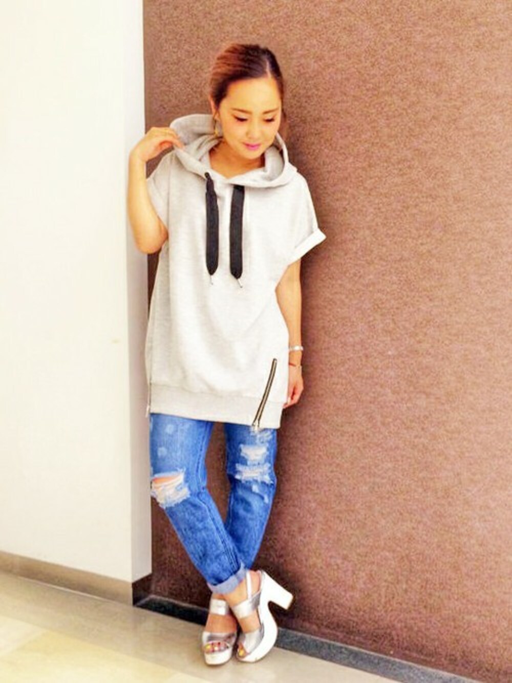 mihoのパーカー「ノースリチュニックパーカー」を使ったコーディネート