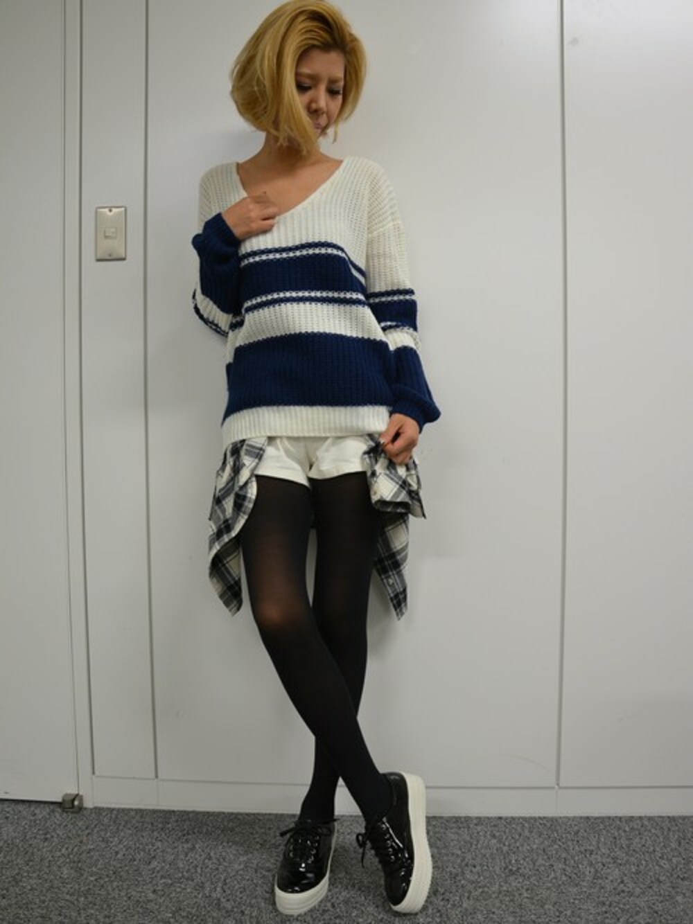 Yukiのニット/セーター「ラインイリVニット」を使ったコーディネート