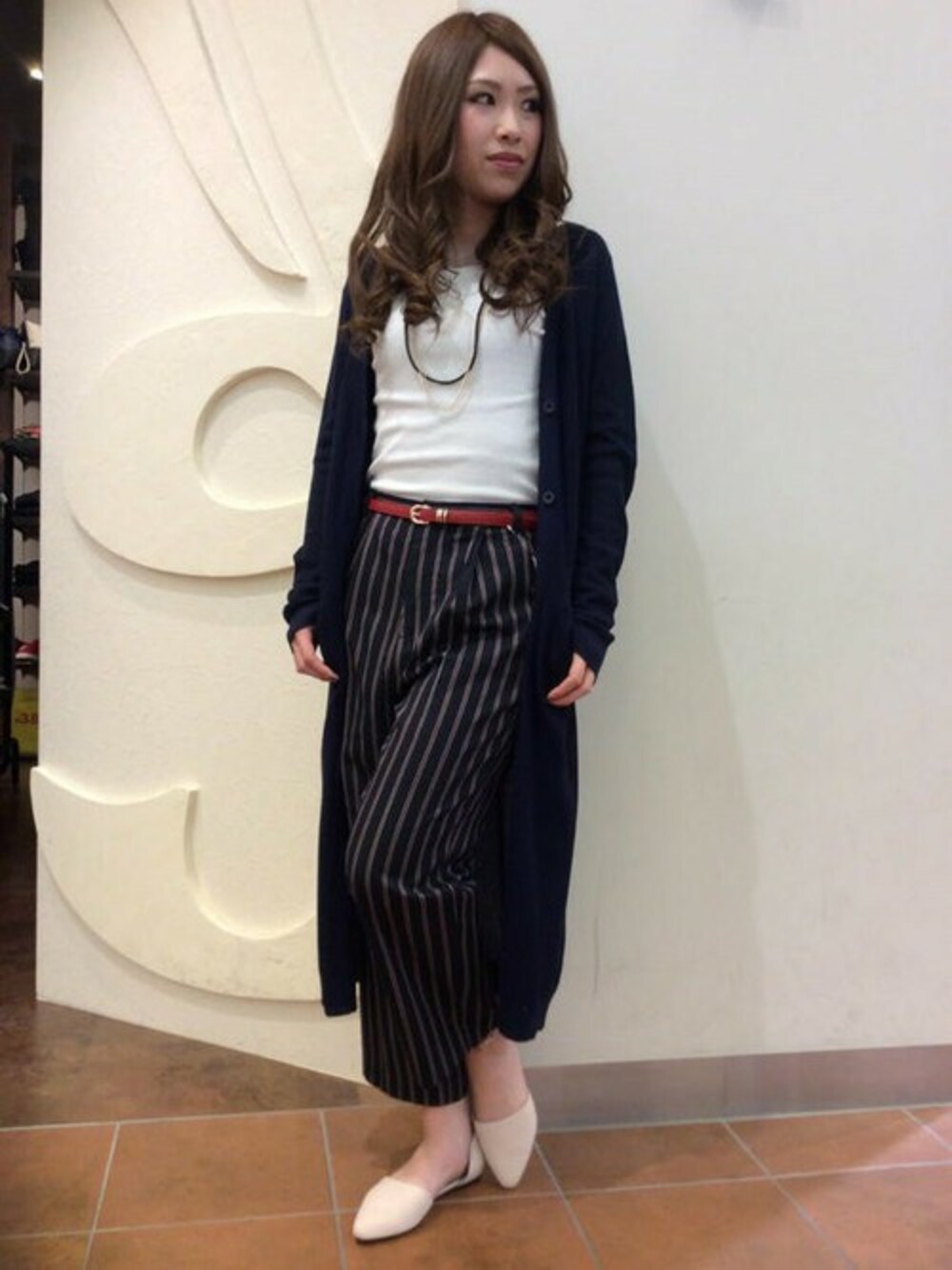 ワイドパンツ ストライプ×ロングカーデで 縦長効果ばっちりです( *`ω´)!!