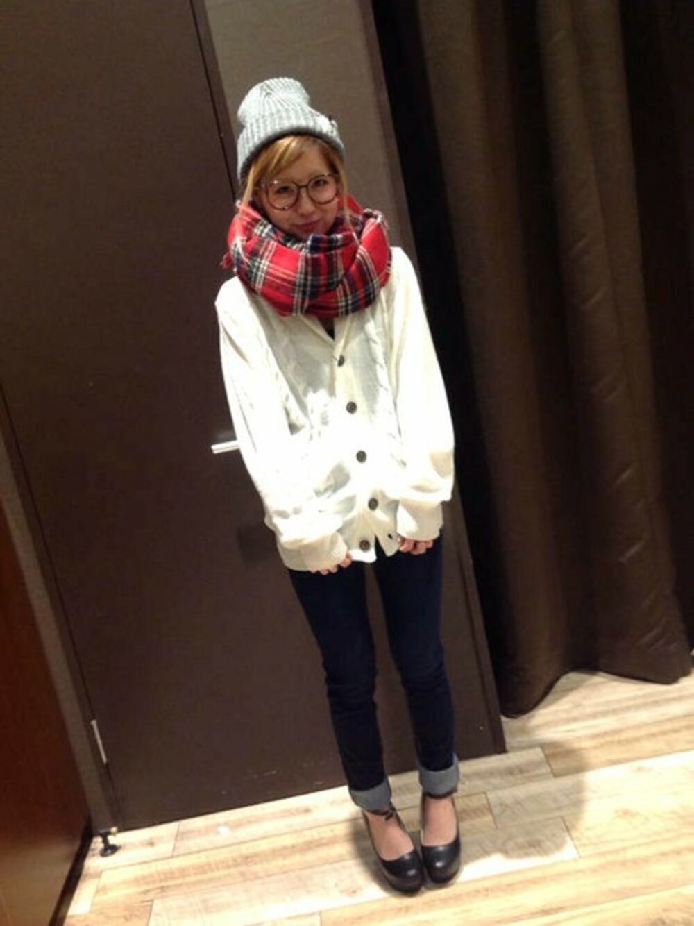 yukiのカーディガン/ボレロ「7Gケーブルカラーショールカーデ 」を使ったコーディネート