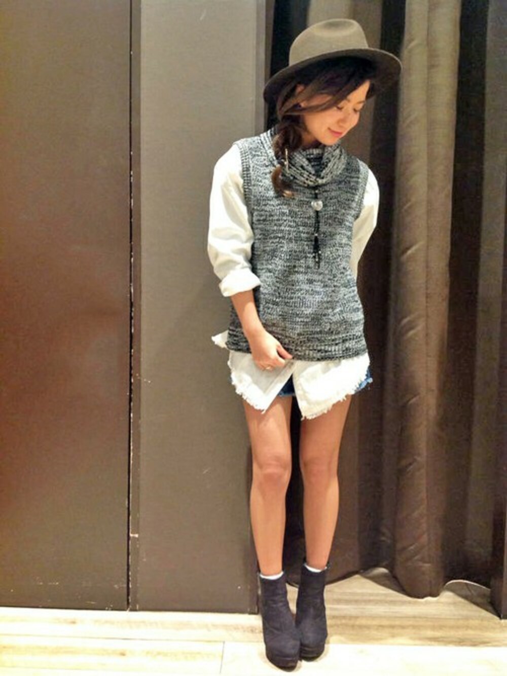 yukiのベスト「オフタートルニットベスト」を使ったコーディネート