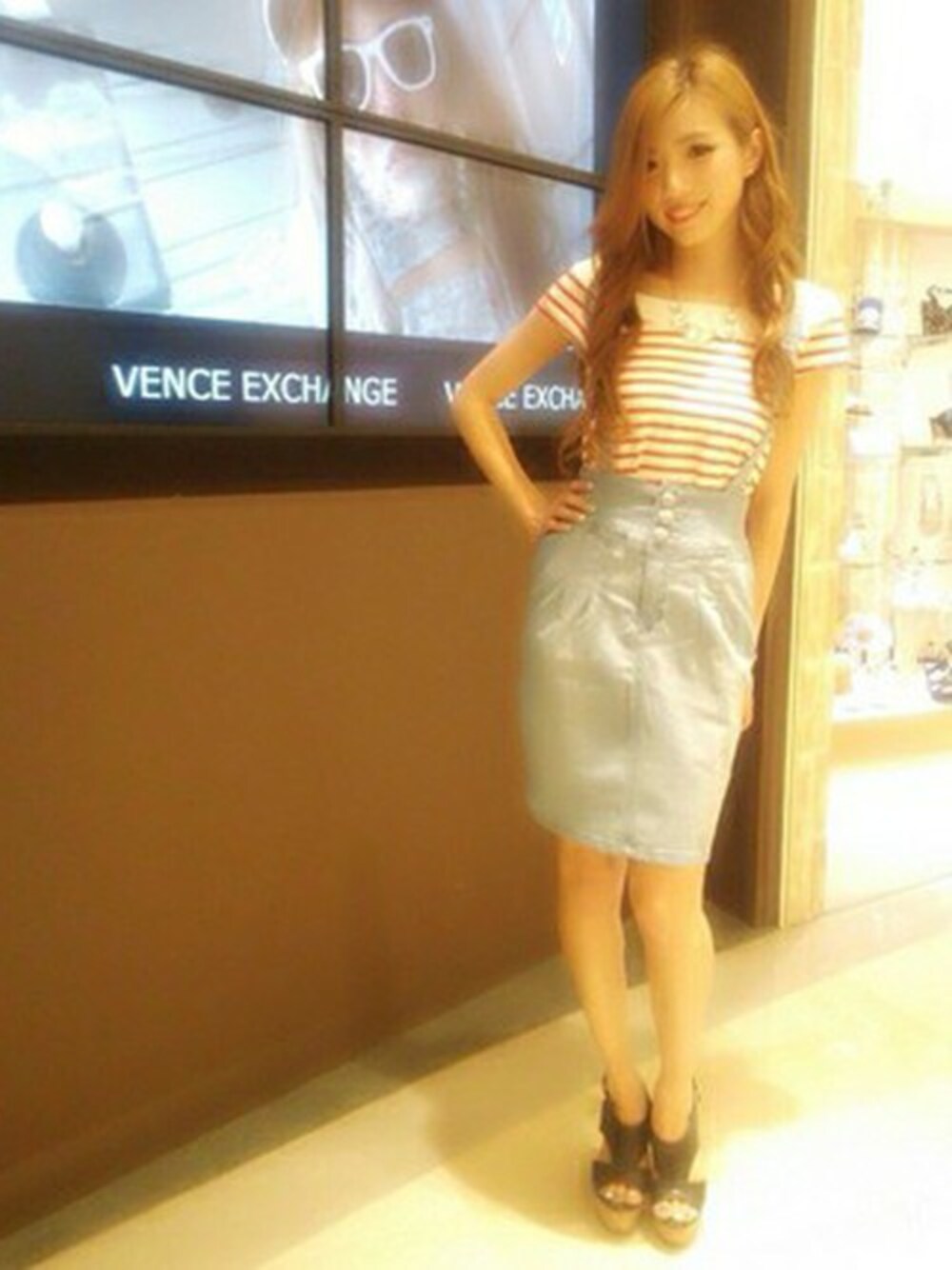 人気のハイウエストのペンシルラインSK☆同生地のサスペンダー付きの新作が登場致しました♪トップスをウエストインするデザインで脚長効果抜群です☆ホワイト/ブルー/スカイブルーの3色展開♪ぜひチェックしてみてくださいね!