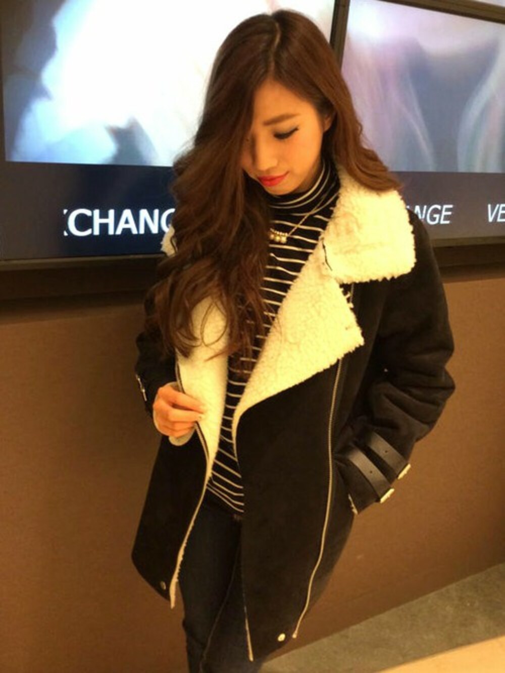 裏地のボアがボリュームたっぷりのフェイクムートンジャケットです。 寒い日には上までジップを上げてベルトをすれば風よけになって、さらにおしゃれです! サラッと羽織るだけでもカッコよく決まります! 一着持ってると着回し幅が広がりますよ♪ chizuおすすめなコーディネートです♪ これからのの時期のデートにもぴったり!!