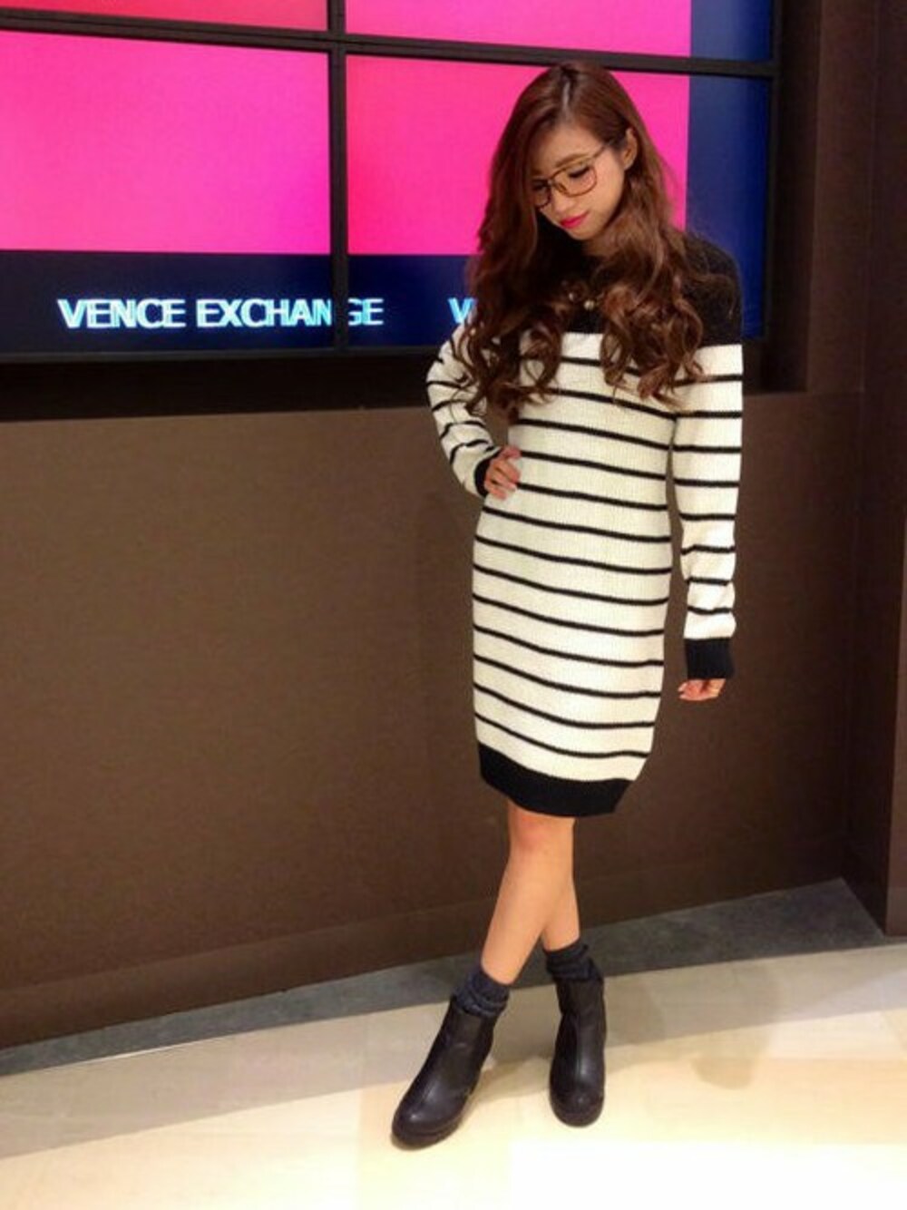 chizuruのワンピース「ロングニットボーダーワンピース 」を使ったコーディネート