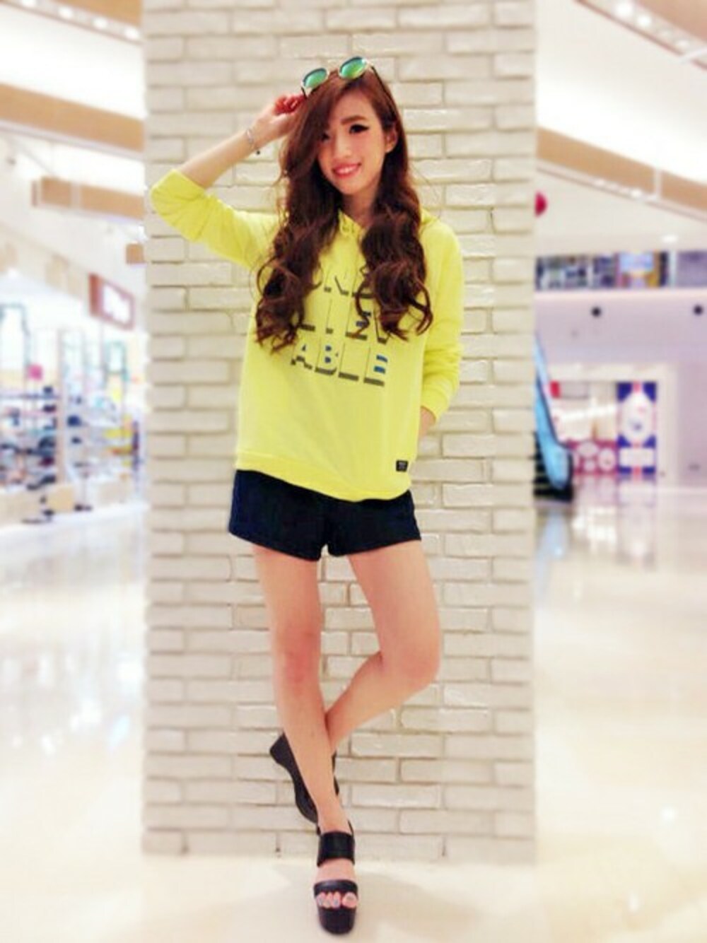 春らしさ溢れるパーカーはイエローをチョイス^^ 中央に大きめのロゴのプリントがあるので、顔回りもすっきり見え体系カバーもできちゃう優秀パーカーです!! 今季はダメージデニムとの組み合わせがおすすめですよ♪ 友達とのペアルックにしても可愛いですよね☆