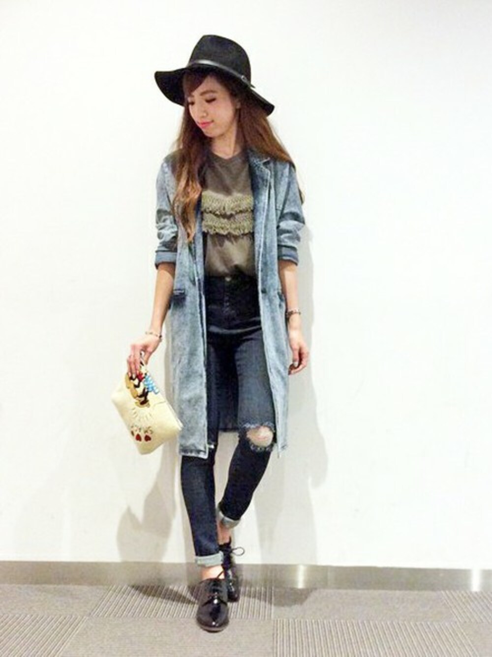 chizuruのハット「フェイクウール中折ツバ広ハット 」を使ったコーディネート