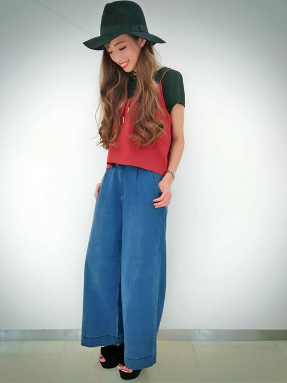 ワイドパンツコーデ♪ キャミソール+ワイドパンツのコーデは今年のトレンドですよね(≧∇≦) ハイウェスト仕様なので、トップスをINして着てもスッキリ見えるのでオススメです♡ イチオシ、テラコッタカラーで秋らしくまとめました♪