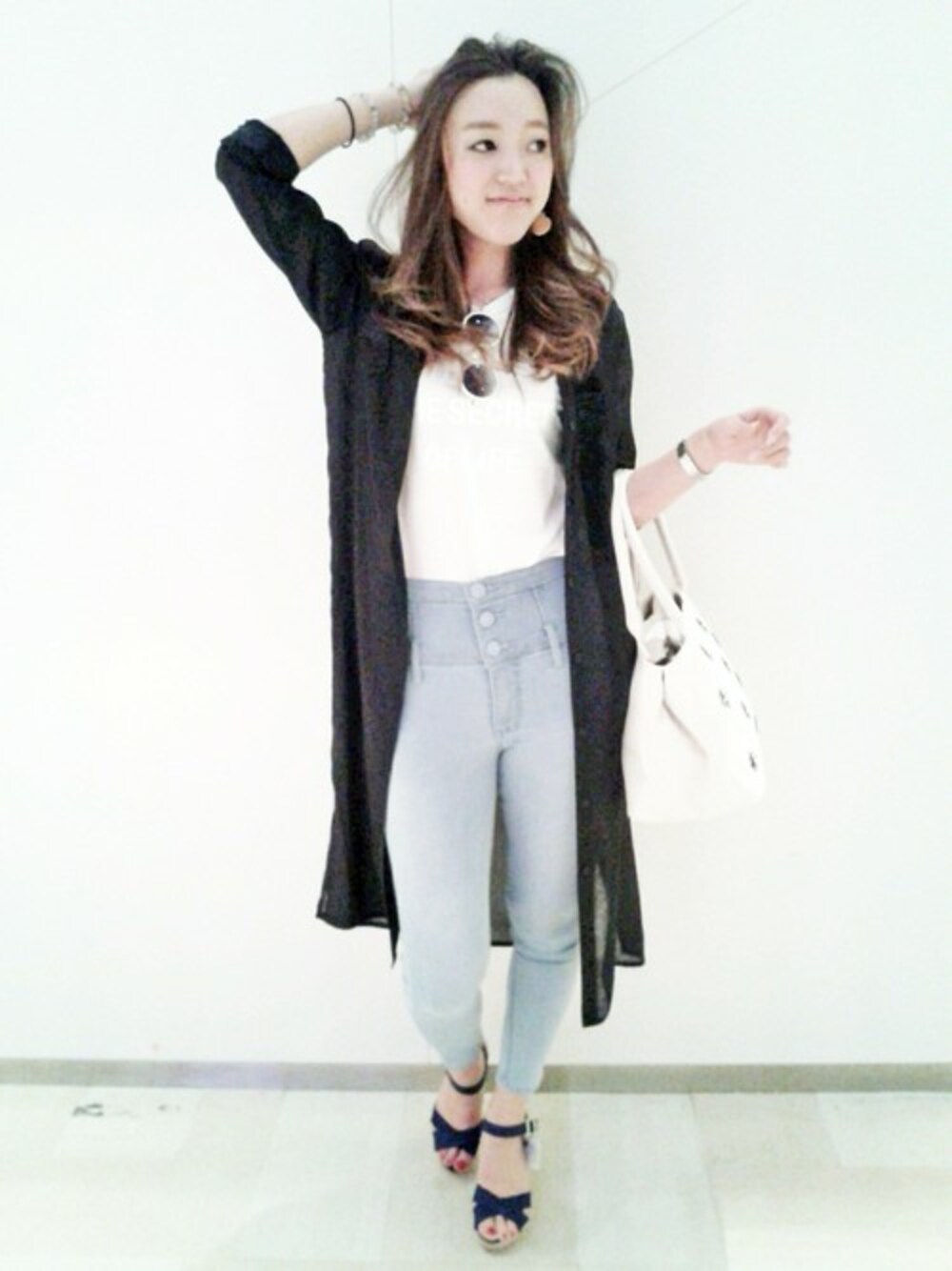 maoのシャツ/ブラウス「ジョーゼットロングシャツ 」を使ったコーディネート