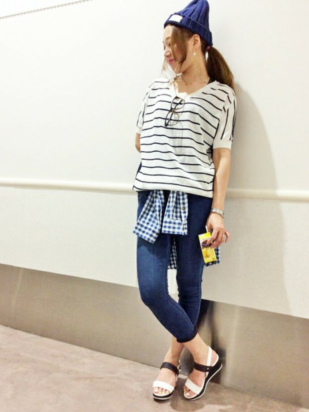 maoのニット/セーター「ボーダー切替ドルマンニットプルオーバー」を使ったコーディネート