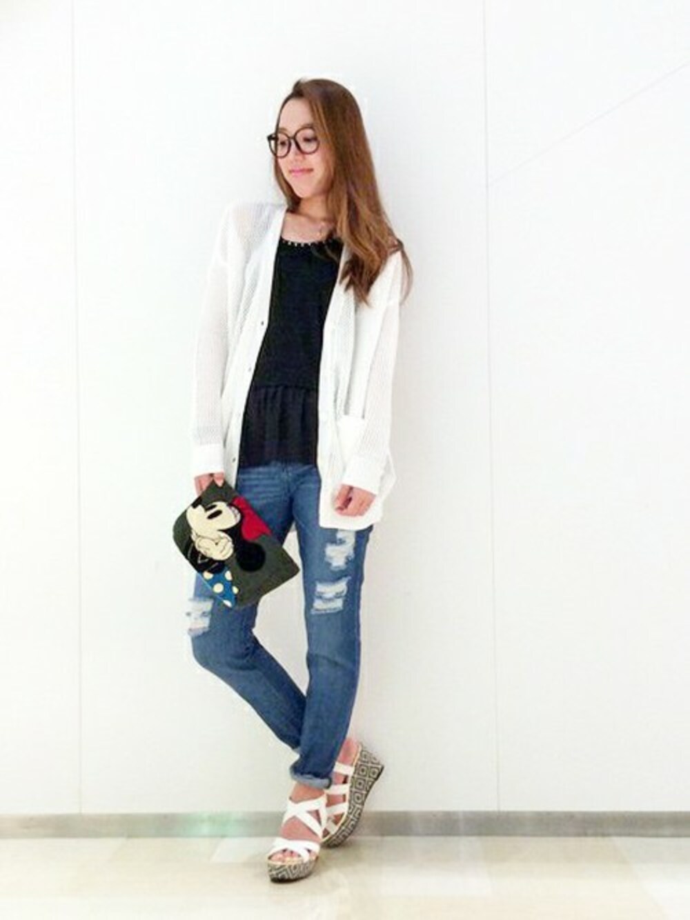 全体的にとってもシンプルヽ(*´∇`)ノ シンプルな分、ウエッジサンダルのソールの幾何学柄がとっても映えます(´∪`*) キレイ系なカジュアルなので、休日のコーデにいかがですか?