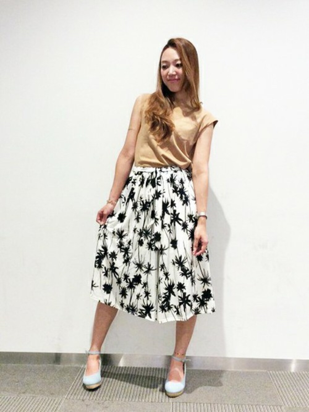 大人ガーリースタイルです(*´˘`*)♡ カワイイ 柄物のガウチョなんですが、TOPSに無地Tをもってきてるので、とっても子供っぽくならず大人な感じに(*´∀`*) ウエストINでスッキリ足長効果(*´∇`)ノ