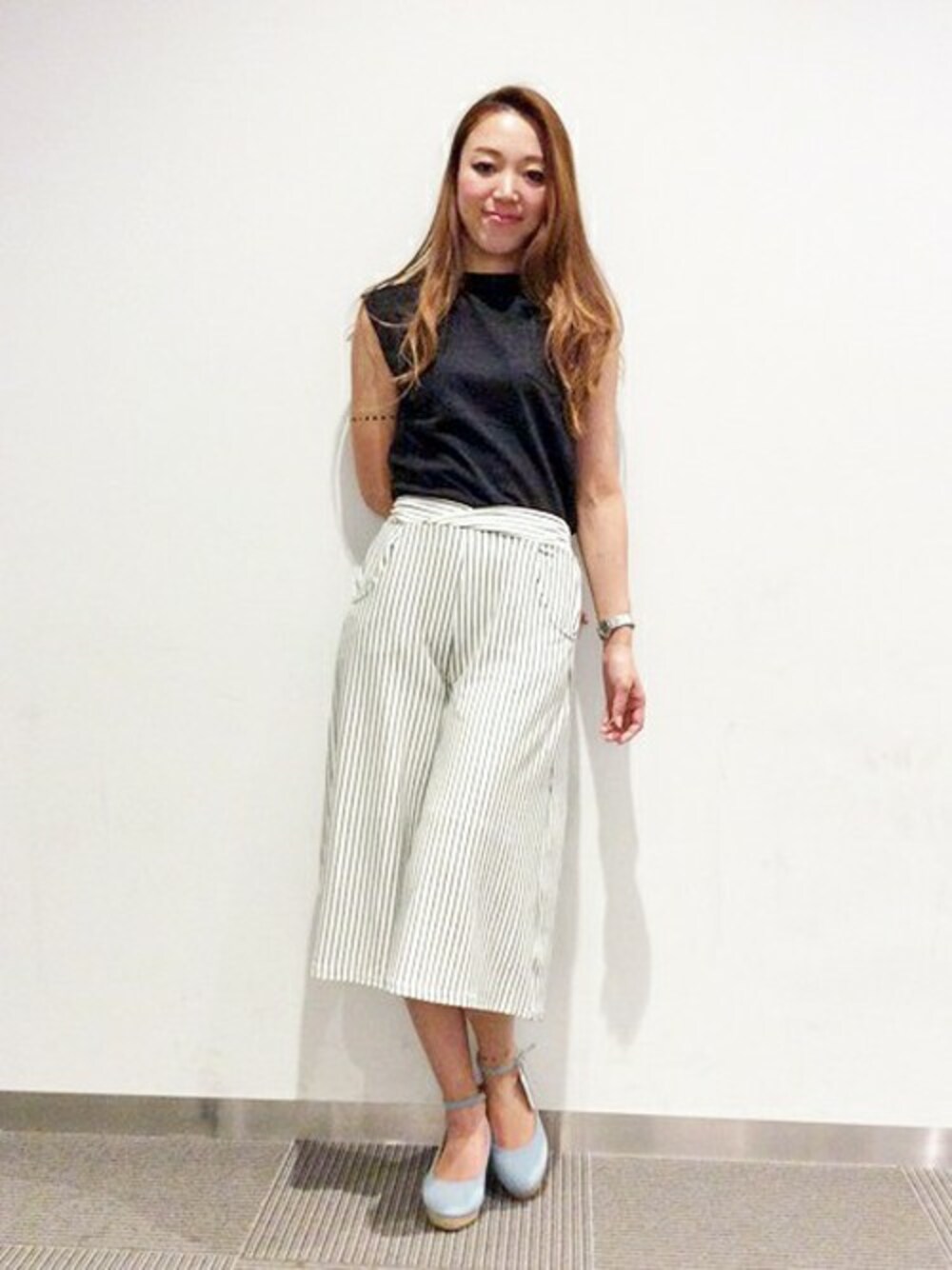 TOPSのちょこっと袖丈長めのノースリーブが、とっても大人っぽいガウチョパンツを引き立ててくれて◎ ベーシックアイテム同士の組み合わせなので、とっても落ち着いた雰囲気になります(^ ^) 足元をサンダルにしてもカワイイですよ୧꒰*´꒳`*꒱૭✧