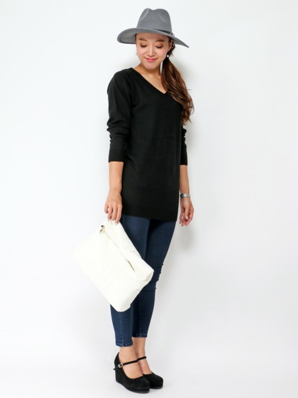 たまには、こんなシンプルなコーデはいかがですか? 全部がシンプルアイテムですが、合わせる小物によってマニッシュにもカジュアルにもなりますよ(^^) 休日スタイルにいいですよね♪