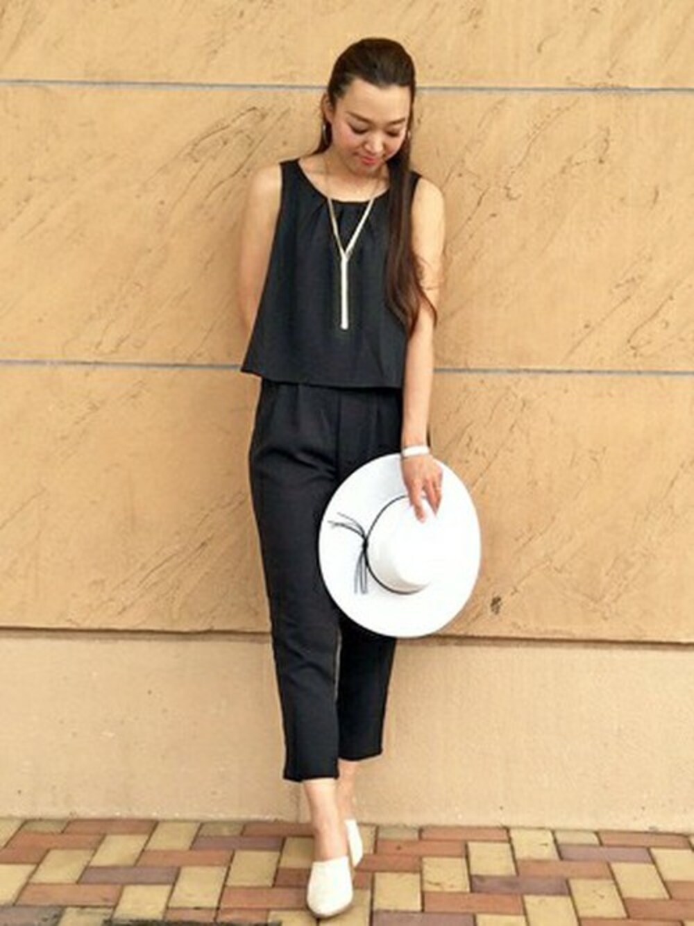 着回し力抜群なオールインワンは、まずブラックがおススメです♡ 小物で遊び心を足しつつシンプルなネックレスで上品に(^_-)-☆ 二次会やちょっとしたレストランなどにもおススメですよ♪