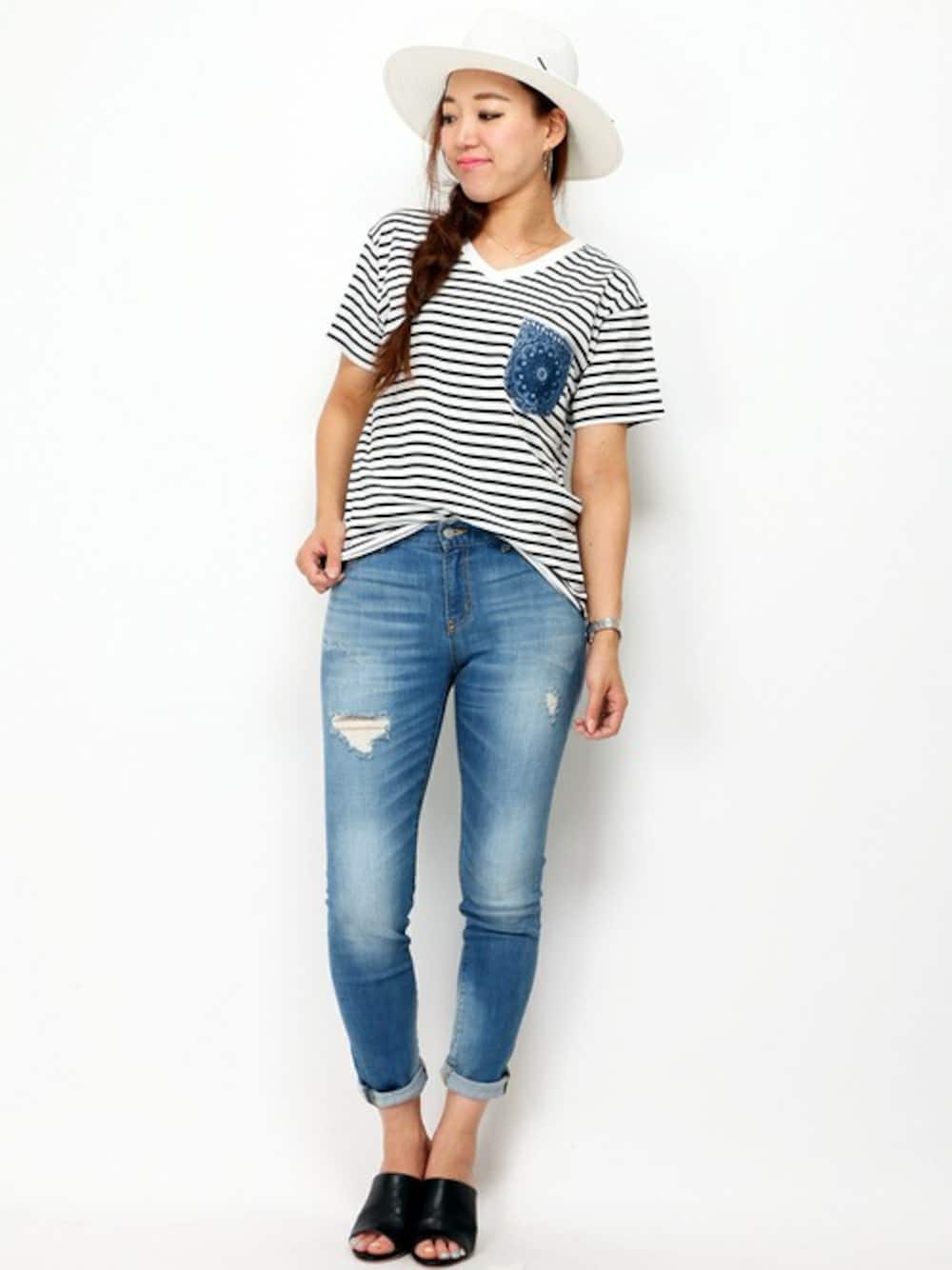 柄ポケットTシャツは今年のトレンド!! 夏のシンプルな着こなしにオススメです(。>v<。) 定番のボーダーはデニムと合わせるだけで、雰囲気がでます♡
